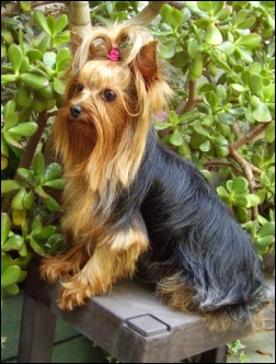 Yorkie-Terrier-Rüde »Lucky« (3 Kilo) im Garten nach einer