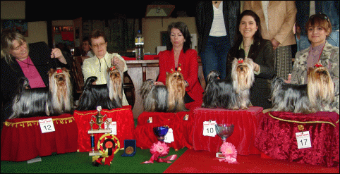 From left: Extra Sweet Trixie (CAC) Captain Jack of Padawi's (BOB), owner: Gabriele Funk & Siegrun Dawin Armanis von Pächtuschi (Best Veteran), owner: Yvonne Spiess / CH Embassy of Padawi´s (BJH & BOS), Broeder/owner: Siegrun Dawin Tangolita Jantarowa Fuga (CAC), owner: Marta Wesolowska / PL
