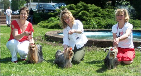 From left: Camparis Golliwogg (BOB / Saarland Winner), owner: Müller / CH Honky Tonk Woman of Dancing River (BOS / Saarland Wr.), owner: S. & M. Krompholz Winwood of Sunlight (BJH / Saarland Junior Wr.), owner: Elfr. Hellmuth & Manuela Hönle