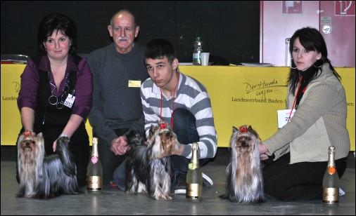 From Left: Cinamon Blandy's Madeira (BOB), owner: Janka Schurler / CH Armin Kriechbaumer (judge) Your Angel Wild Fantasy (Best Junior), owner: Kerstin Meyer Playmaker of Bregadoon (BOS), breeder/owner: Kerstin Meyer